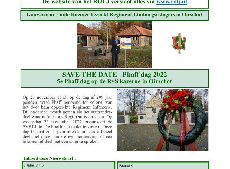 Veteranen Vereniging Regiment Limburgse Jagers Inschrijving Regimentsjaardag 2022 (tevens AV VVRLJ) geopend
