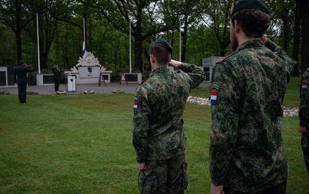 Ondanks het drukke programma en het feit dat Dodenherdenking dit jaar in het weekend valt werd er bij het Regiments monument een waardige herdenking gehouden. Met een toespraak van de Regimentscommandant, overste Rutger Saathof, die inging op de Regimentsgenoten die het hoogste offer gaven. Met name noemde hij de gevallenen die onder ons vaandel sneuvelden in Irak en Afghanistan. Maar ook wist hij een goed verbinding te leggen met de situatie in de wereld van nu. Samen met de Regimentsadjudant, Adjudant Pieter Smit, legde hij de krans namens het Regiment. Ook de plaatsvervangend Gouverneur van Limburg legde een krans, net als het bestuur van de Regimentsvereniging.